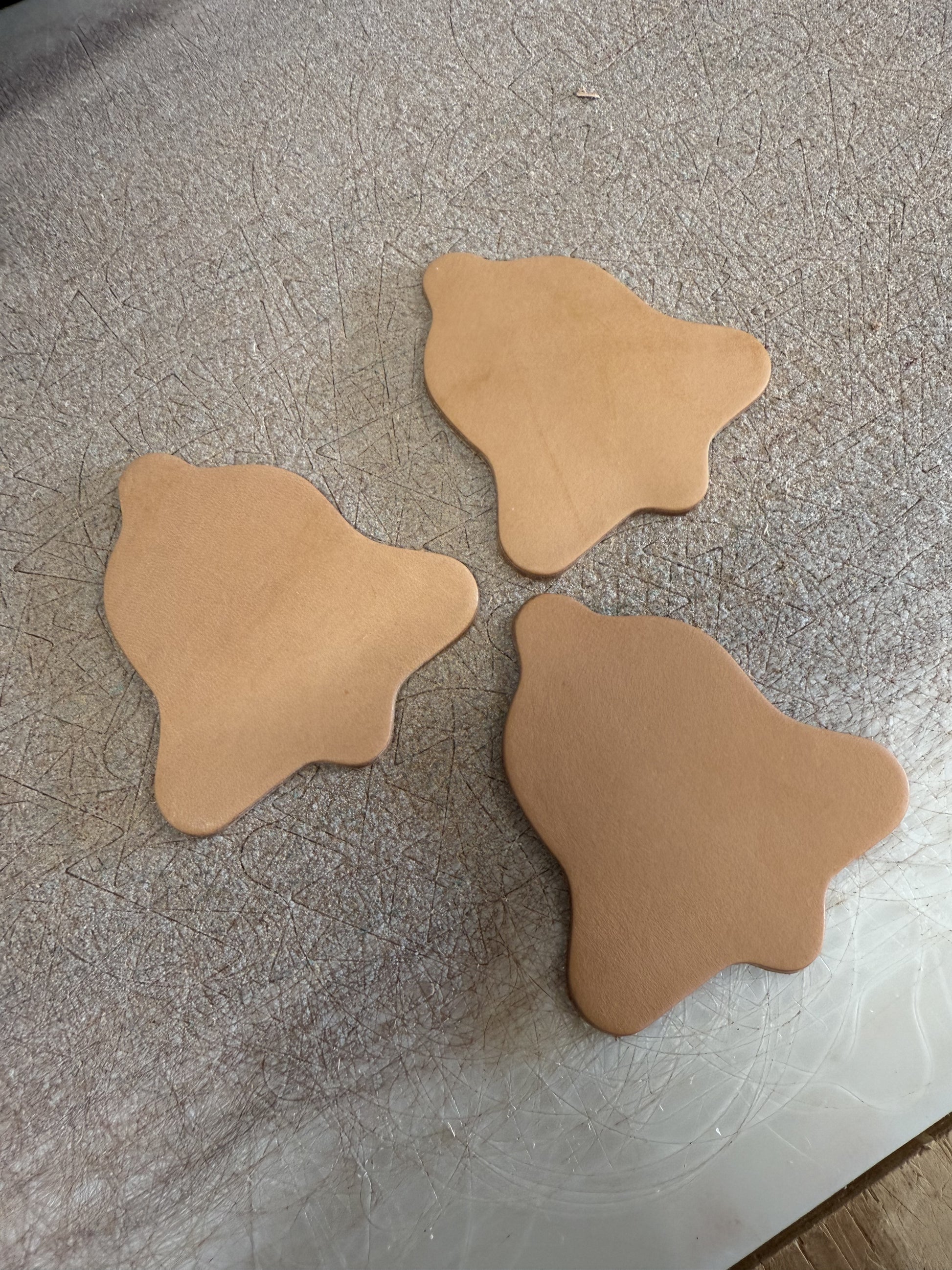 This is a die cut Christmas Tree Ornament cut from 9/10oz Hermann Oak Veg tanned leather. These are fun shapes that can be tooled and personalized to hang on your Christmas tree. These are also fun little projects for kids to begin learning leather tooling.