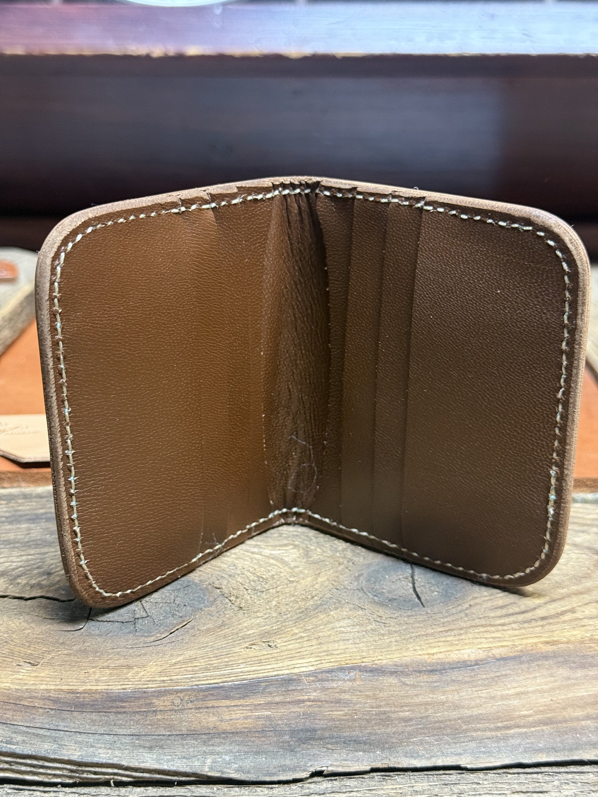 This Compact Card Wallet features Basket Stamped tooling as well as a braided border stamp.