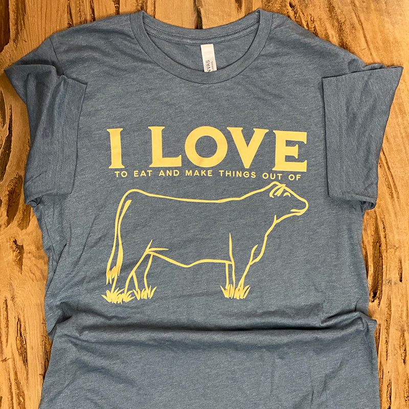 "I Love Cows" Tshirt - Heather Cool Grey Color
