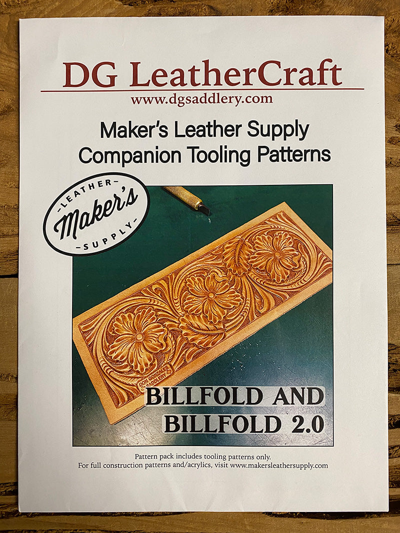 This is a Companion Tooling Pattern Pack we designed with 10 different floral patterns. This is to compliment Maker's Leather Supply's Billfold and/or Billfold 2.0 Project and Acrylic Templates that they produce.