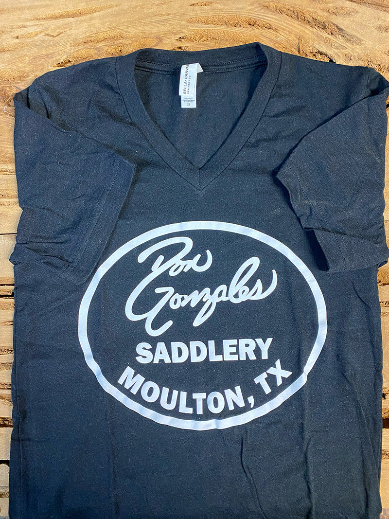 V - Neck DG Saddlery Logo Tshirt - Heather Black